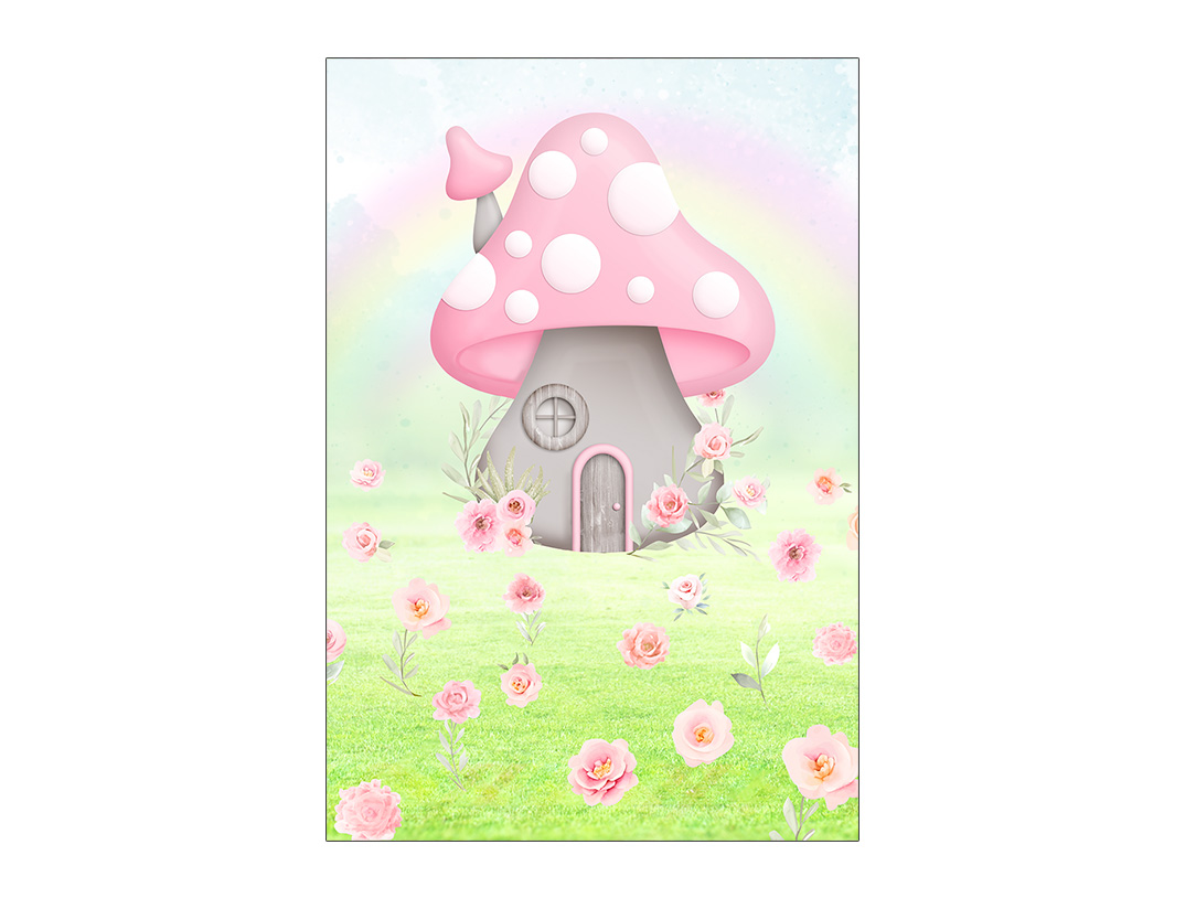 Painel De Festa Vertical 1,50 x 2,20 - Jardim Encantado com Cogumelos 063