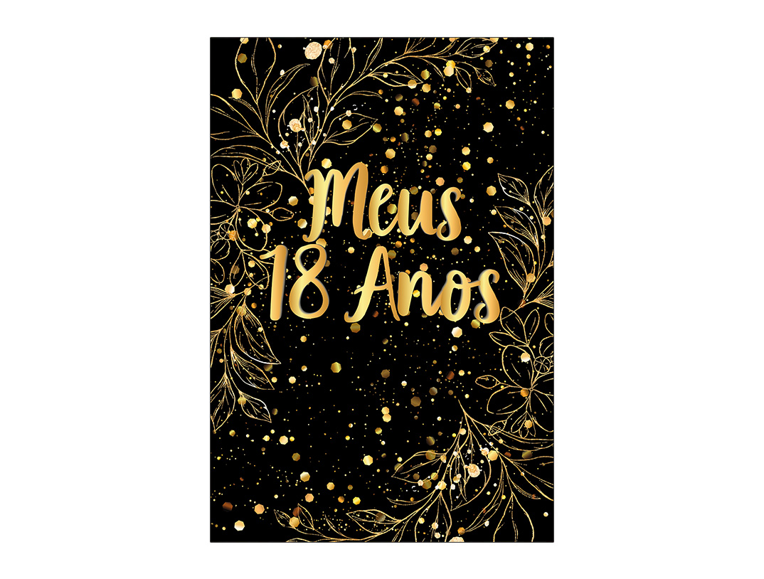 Painel De Festa Vertical 1,50 x 2,20 - Meus 18 Anos Efeito Brilhos Dourados 239