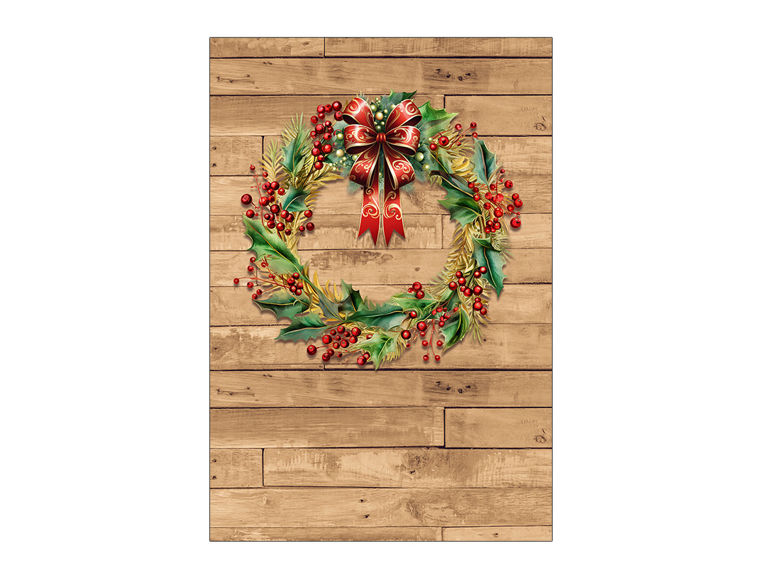Painel De Festa Vertical 1,50 x 2,20 - Natal Efeito Madeira com Guirlanda 030