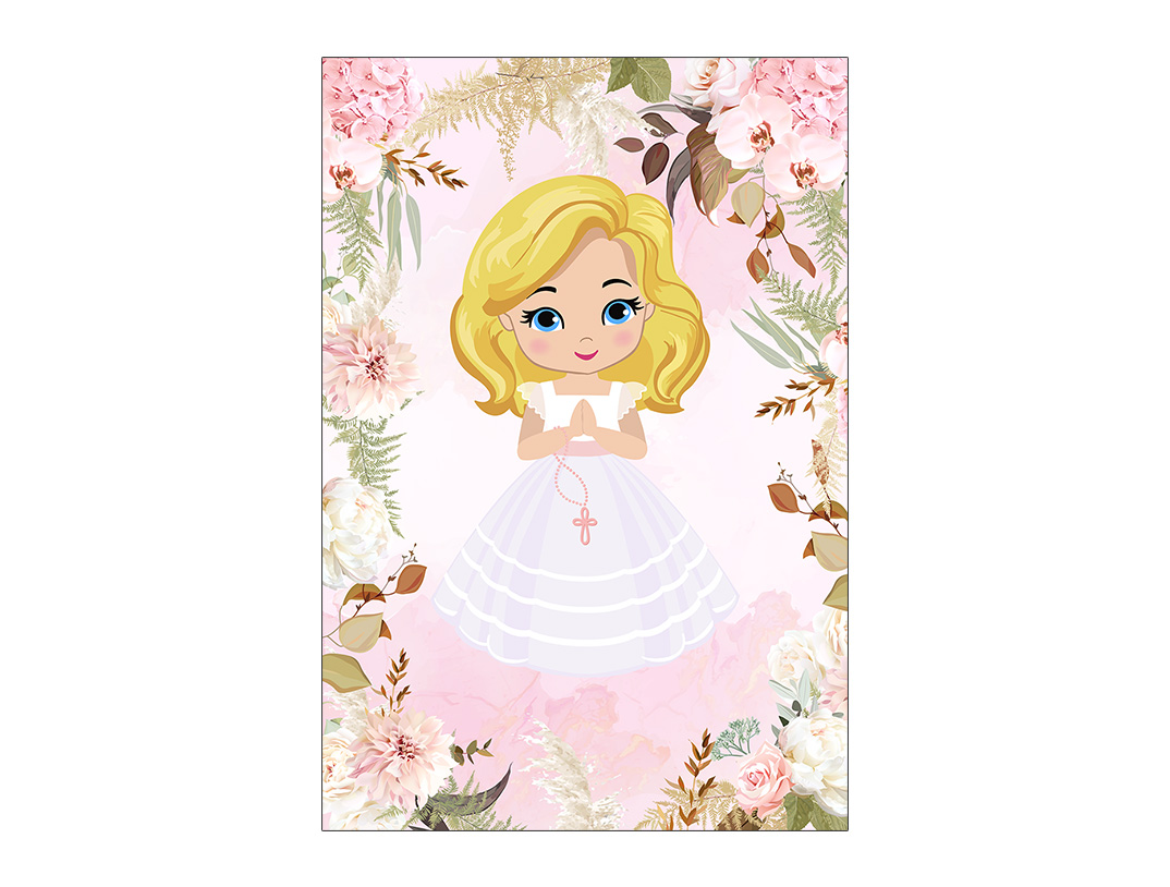Painel De Festa Vertical 1,50 x 2,20 - Primeira Eucaristia Menina Cute 051