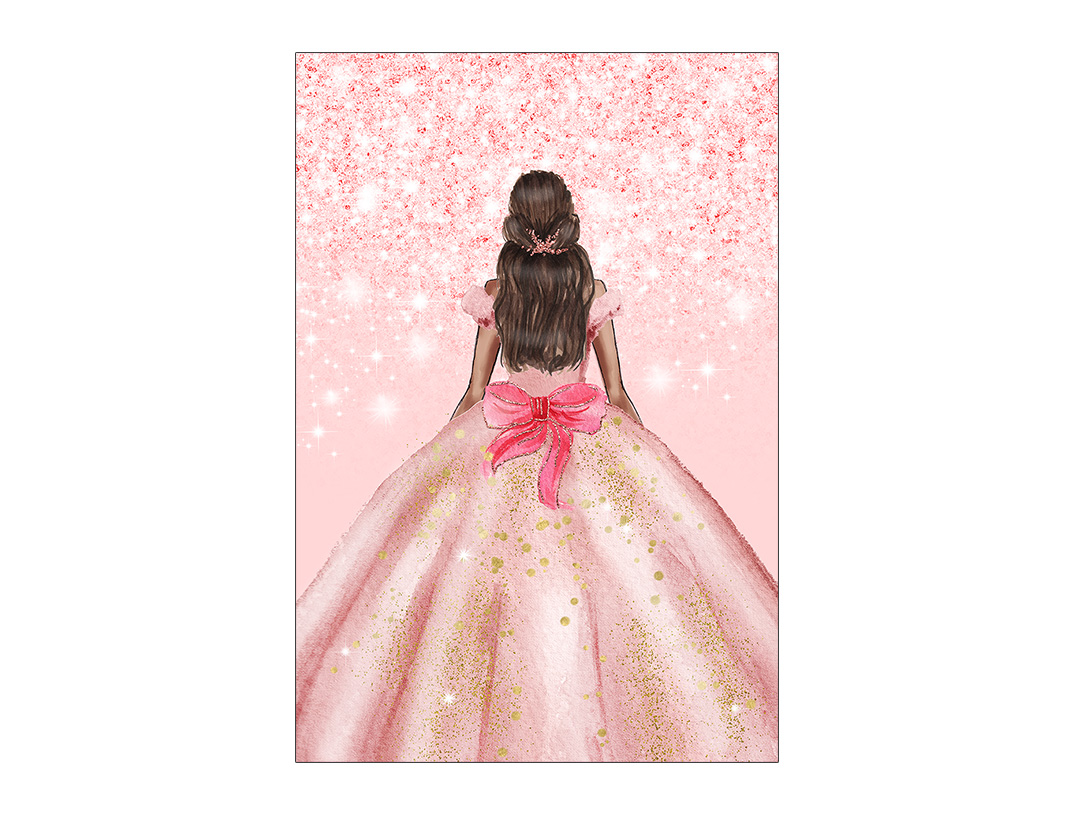Painel De Festa Vertical 1,50 x 2,20 - Princesa Rosa Suave Efeito Glitter 206