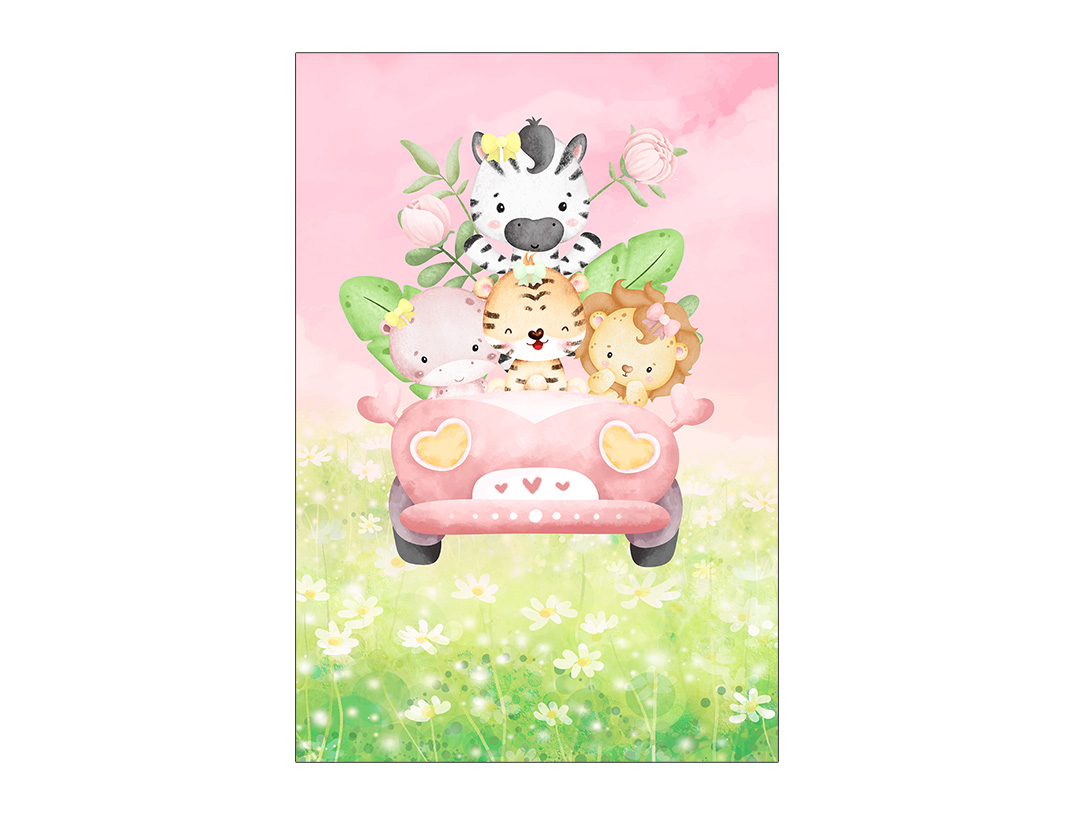 Painel De Festa Vertical 1,50 x 2,20 - Safari Cute Rosa 019