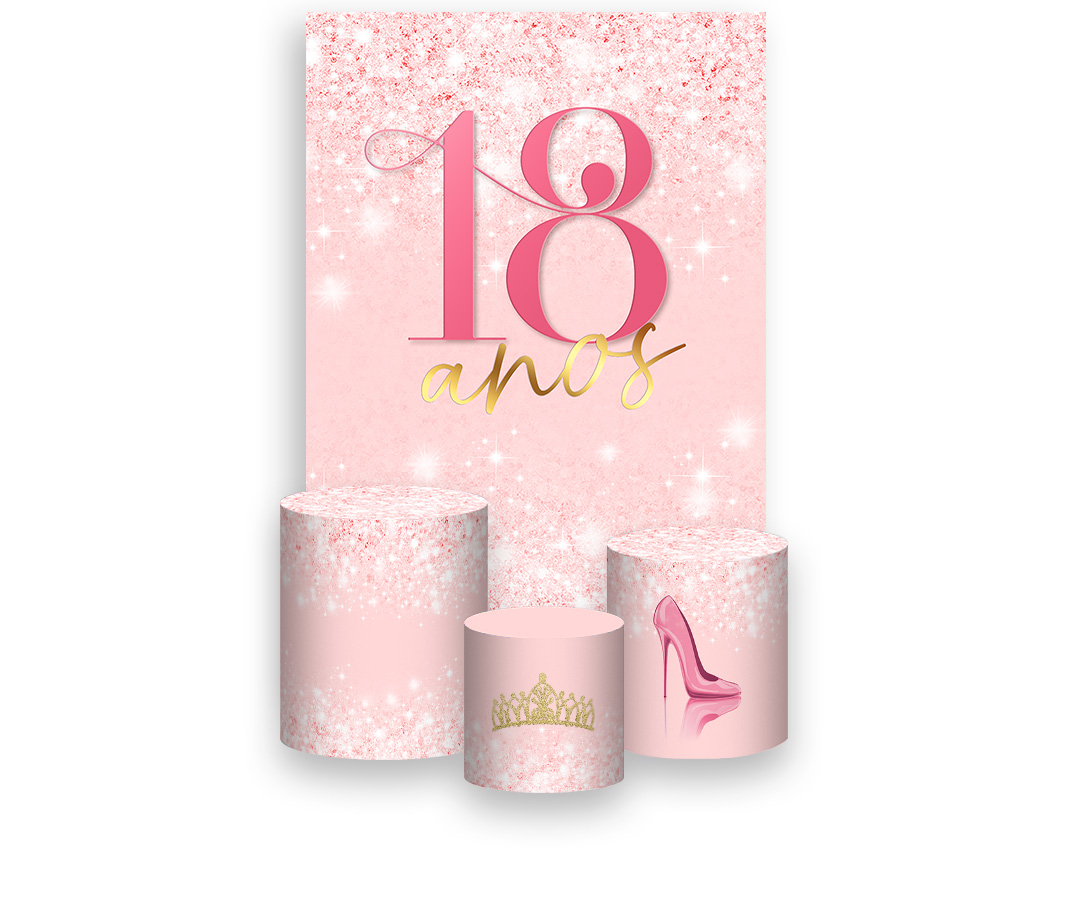 Painel De Festa Vertical 1,50 x 2,20 + Trio De Capas Cilindro - 18 Anos Rosa Suave Efeito Glitter 226
