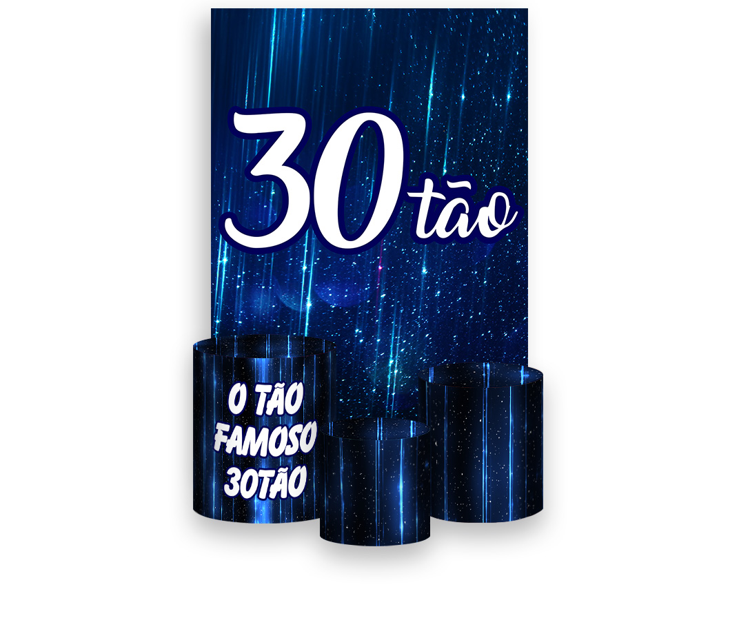 Painel De Festa Vertical 1,50 x 2,20 + Trio De Capas Cilindro - 30 Anos 30TÃO Azul 097