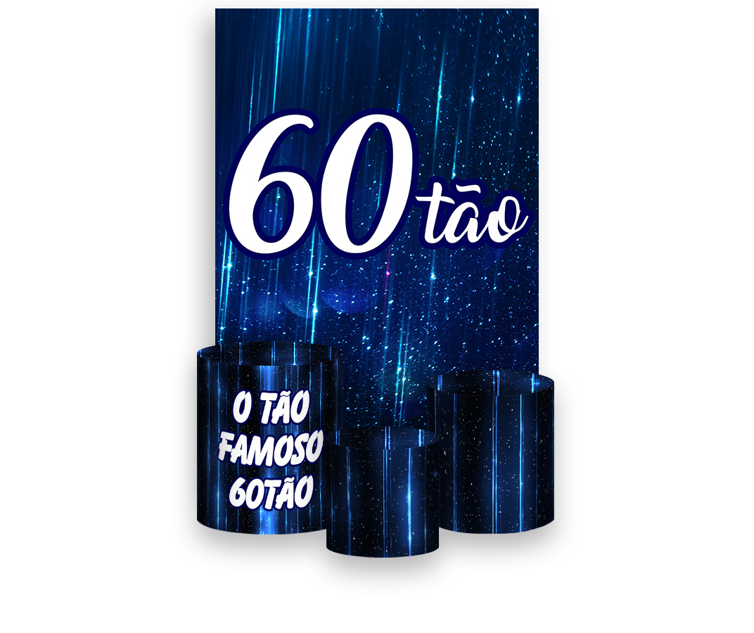 Painel De Festa Vertical 1,50 x 2,20 + Trio De Capas Cilindro - 60 Anos 60TÃO Azul 095
