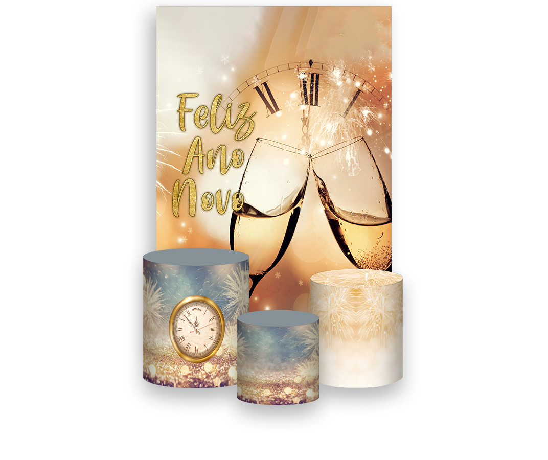 Painel De Festa Vertical 1,50 x 2,20 + Trio De Capas Cilindro - Ano Novo Dourado 004