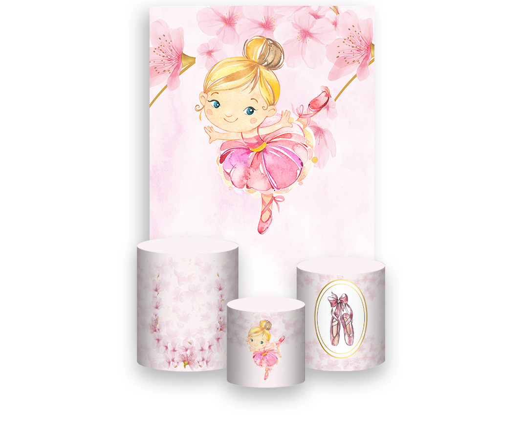 Painel De Festa Vertical 1,50 x 2,20 + Trio De Capas Cilindro - Bailarina Floral Rosa 025