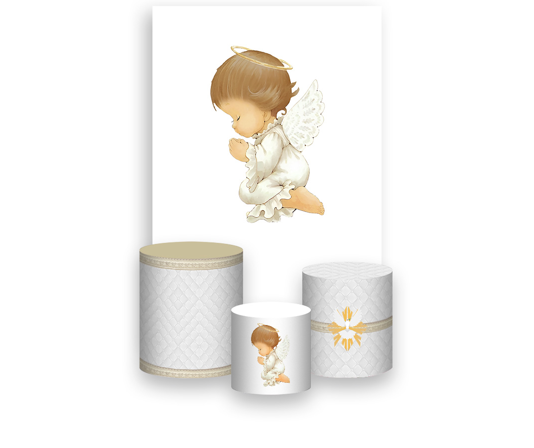 Painel De Festa Vertical 1,50 x 2,20 + Trio De Capas Cilindro - Batizado Anjinho Cute 021