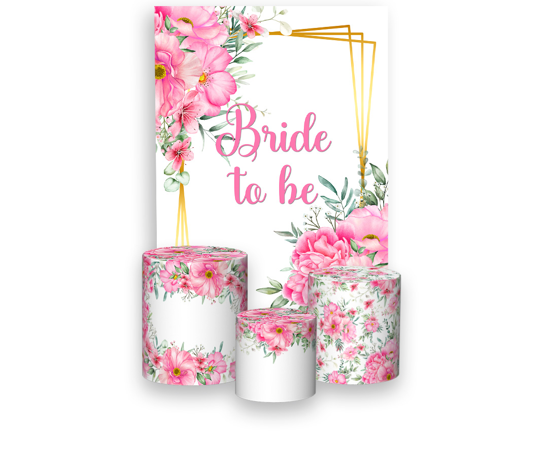 Painel De Festa Vertical 1,50 x 2,20 + Trio De Capas Cilindro - Bride To Be Floral Rosa 008