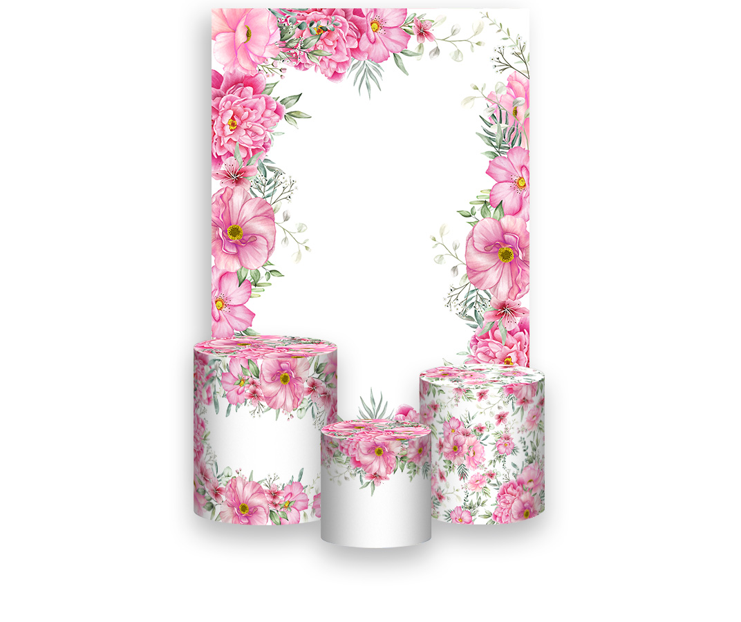 Painel De Festa Vertical 1,50 x 2,20 + Trio De Capas Cilindro - Bride To Be Floral Rosa 112