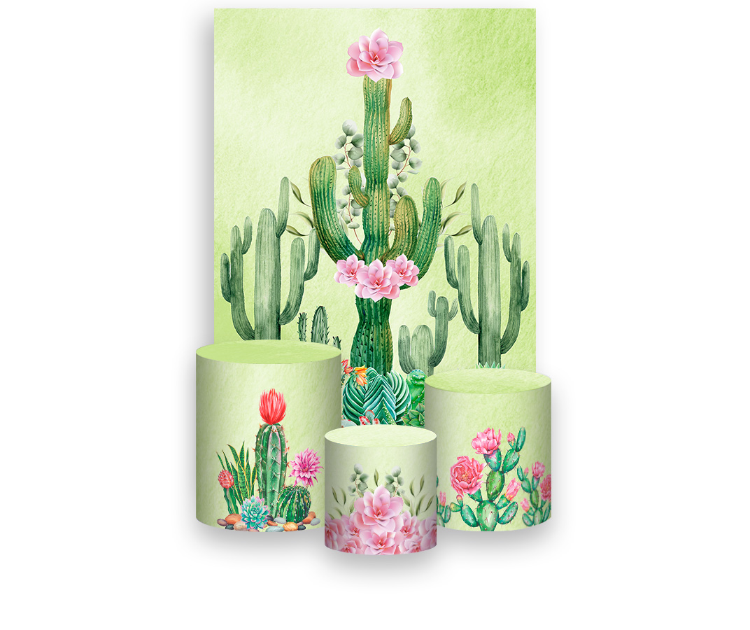 Painel De Festa Vertical 1,50 x 2,20 + Trio De Capas Cilindro - Catcto e Flores 120s