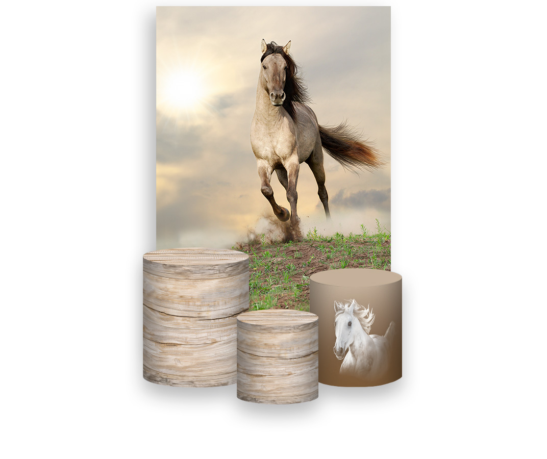 Painel De Festa Vertical 1,50 x 2,20 + Trio De Capas Cilindro - Cavalo Tons de Bege 052