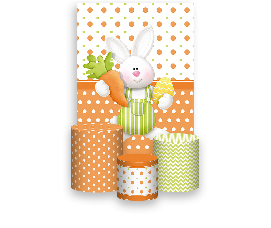 Painel De Festa Vertical 1,50 x 2,20 + Trio De Capas Cilindro - Coelho da Páscoa Verde e Laranja 010