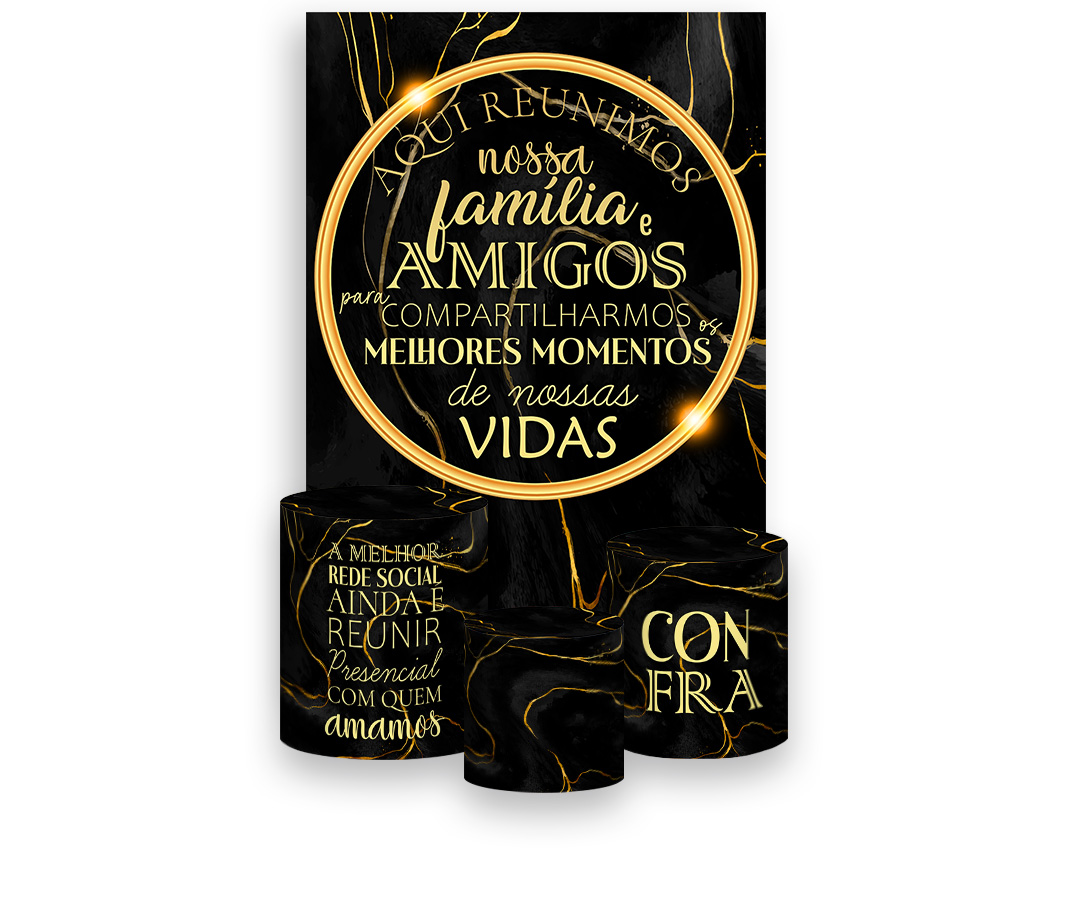 Painel De Festa Vertical 1,50 x 2,20 + Trio De Capas Cilindro - Confraternização Preto com Dourado 027