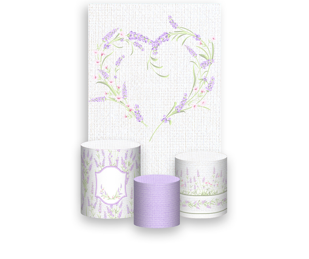 Painel De Festa Vertical 1,50 x 2,20 + Trio De Capas Cilindro - Coração de Lavanda Aquarela 054