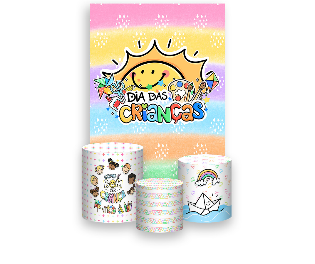 Painel De Festa Vertical 1,50 x 2,20 + Trio De Capas Cilindro - Dia das Crianças Colorido Divertido 043