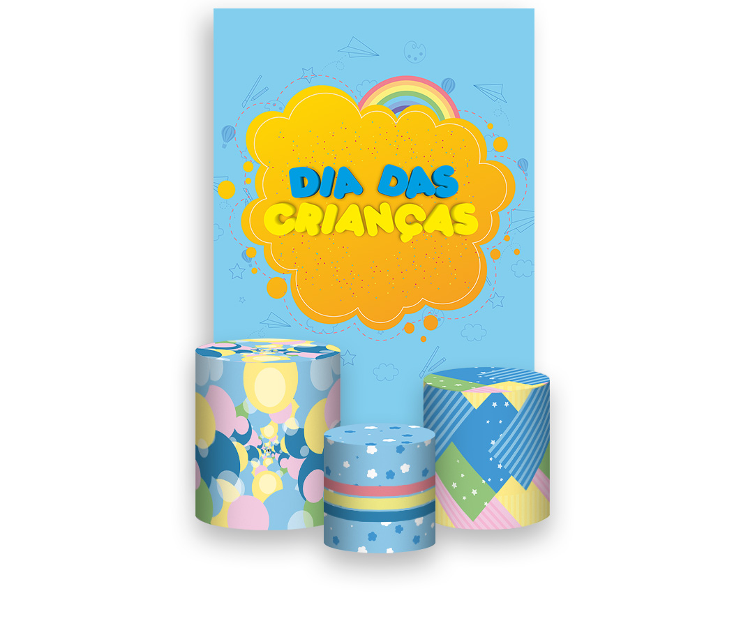 Painel De Festa Vertical 1,50 x 2,20 + Trio De Capas Cilindro - Dia das Crianças Nuvens 016