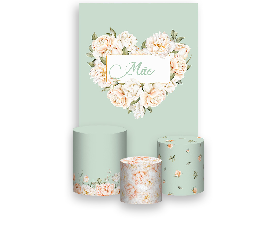 Painel De Festa Vertical 1,50 x 2,20 + Trio De Capas Cilindro - Dia das Mães Floral Verde Suave 107