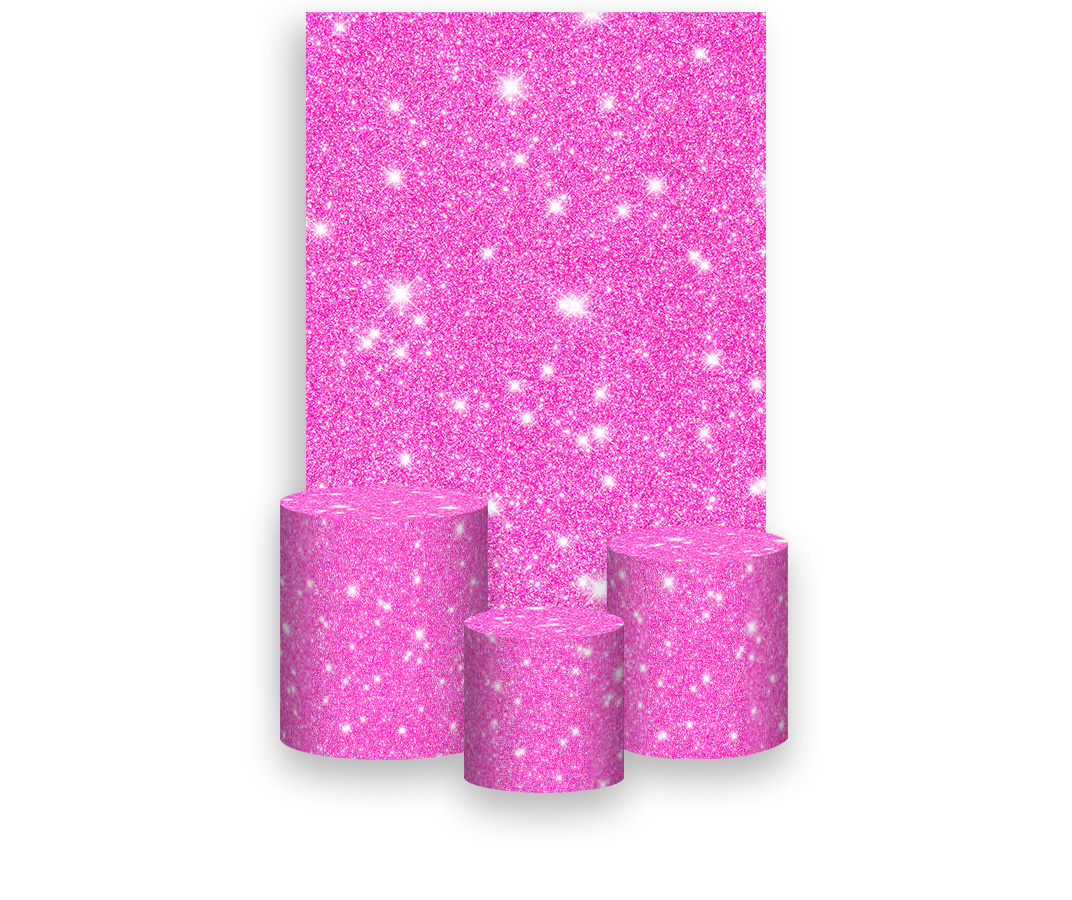 Painel De Festa Vertical 1,50 x 2,20 + Trio De Capas Cilindro - Efeito Glitter Pink 064