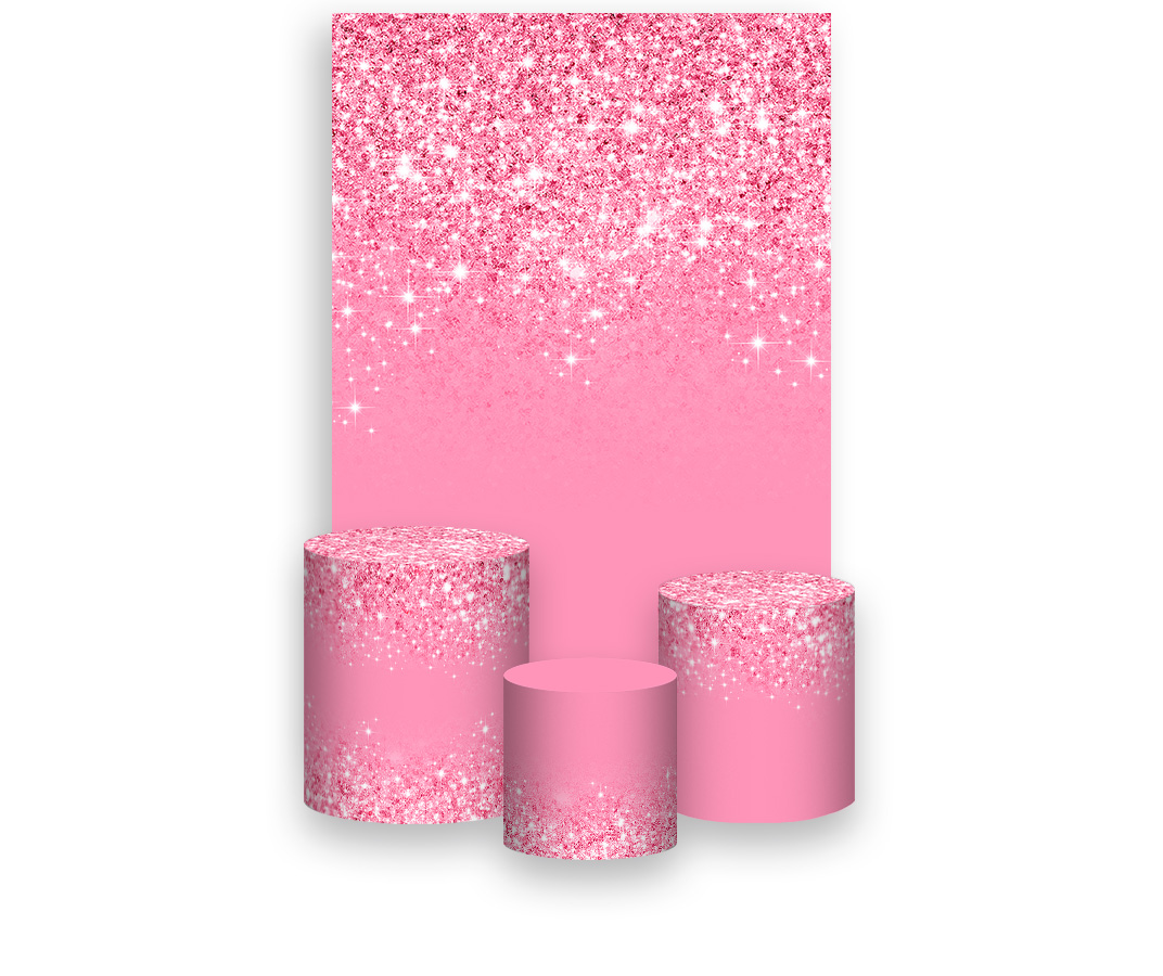 Painel De Festa Vertical 1,50 x 2,20 + Trio De Capas Cilindro - Efeito Glitter Rosa 044