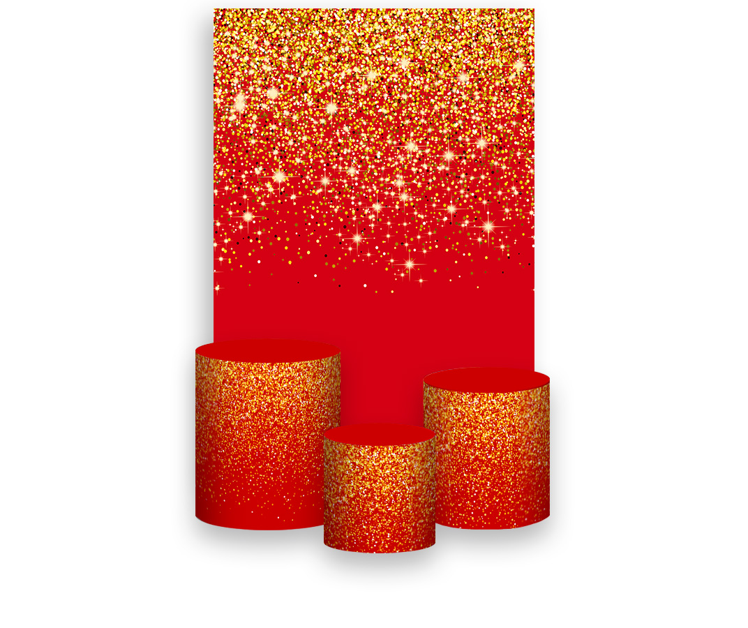 Painel De Festa Vertical 1,50 x 2,20 + Trio De Capas Cilindro - Efeito Glitter Vermelho com Dourado 079