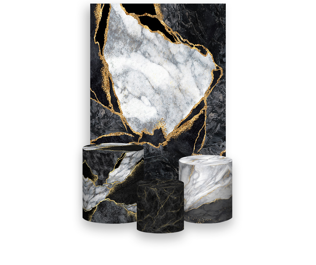 Painel De Festa Vertical 1,50 x 2,20 + Trio De Capas Cilindro - Efeito Marmorizado Preto com Cinza 077