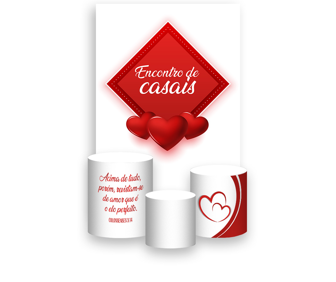 Painel De Festa Vertical 1,50 x 2,20 + Trio De Capas Cilindro - Encontro de Casais Vermelho 065