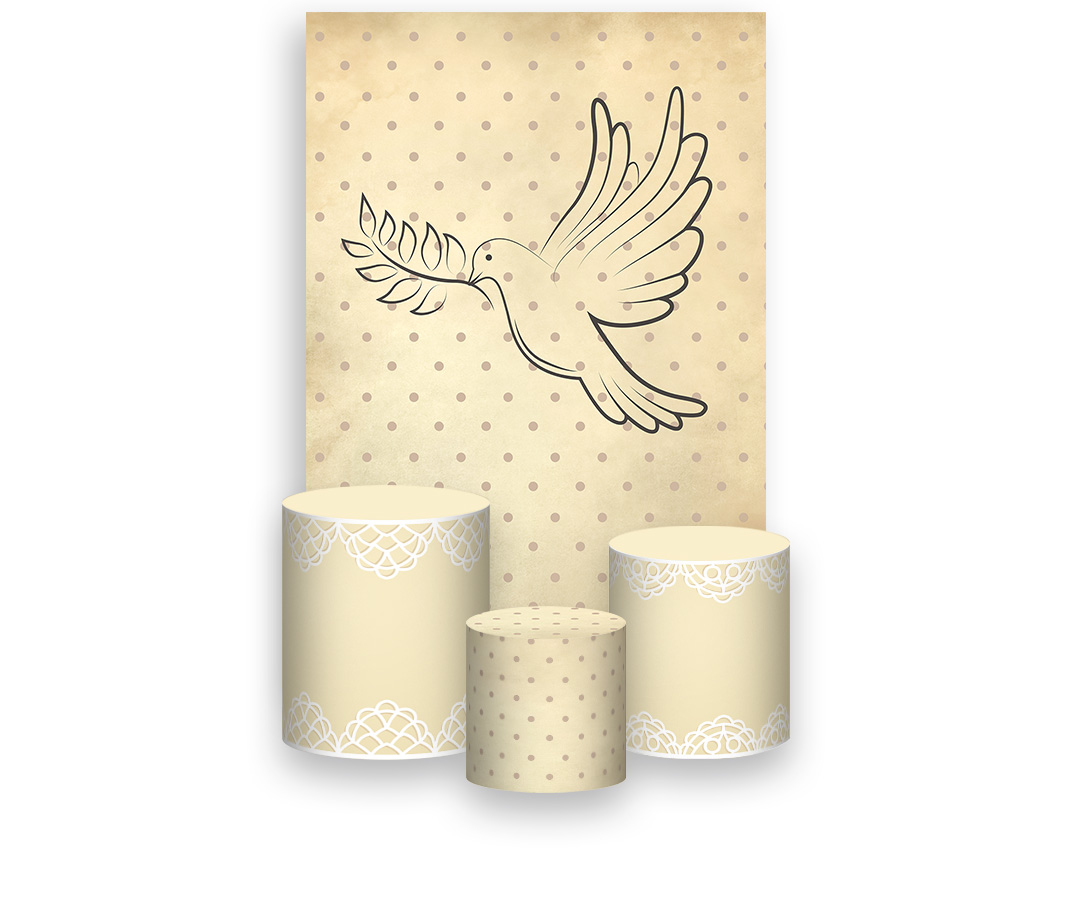 Painel De Festa Vertical 1,50 x 2,20 + Trio De Capas Cilindro - Espirito Santo Clássico Bege 004