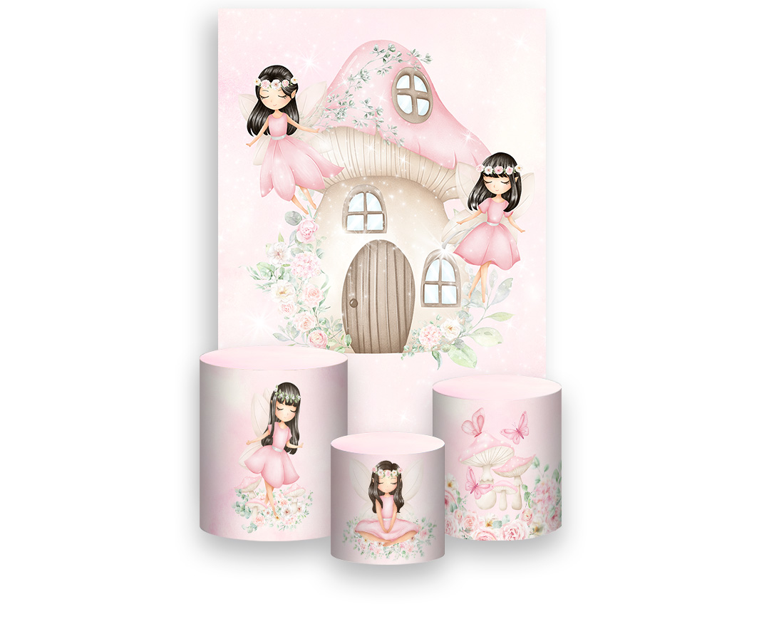 Painel De Festa Vertical 1,50 x 2,20 + Trio De Capas Cilindro - Fadas Jardim Aquarela 017
