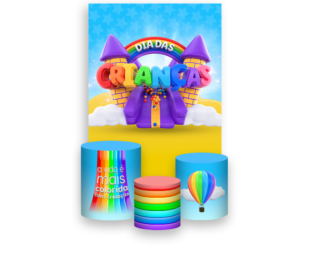 Painel De Festa Vertical 1,50 x 2,20 + Trio De Capas Cilindro - Feliz Dia das Crianças Brinquedos 042