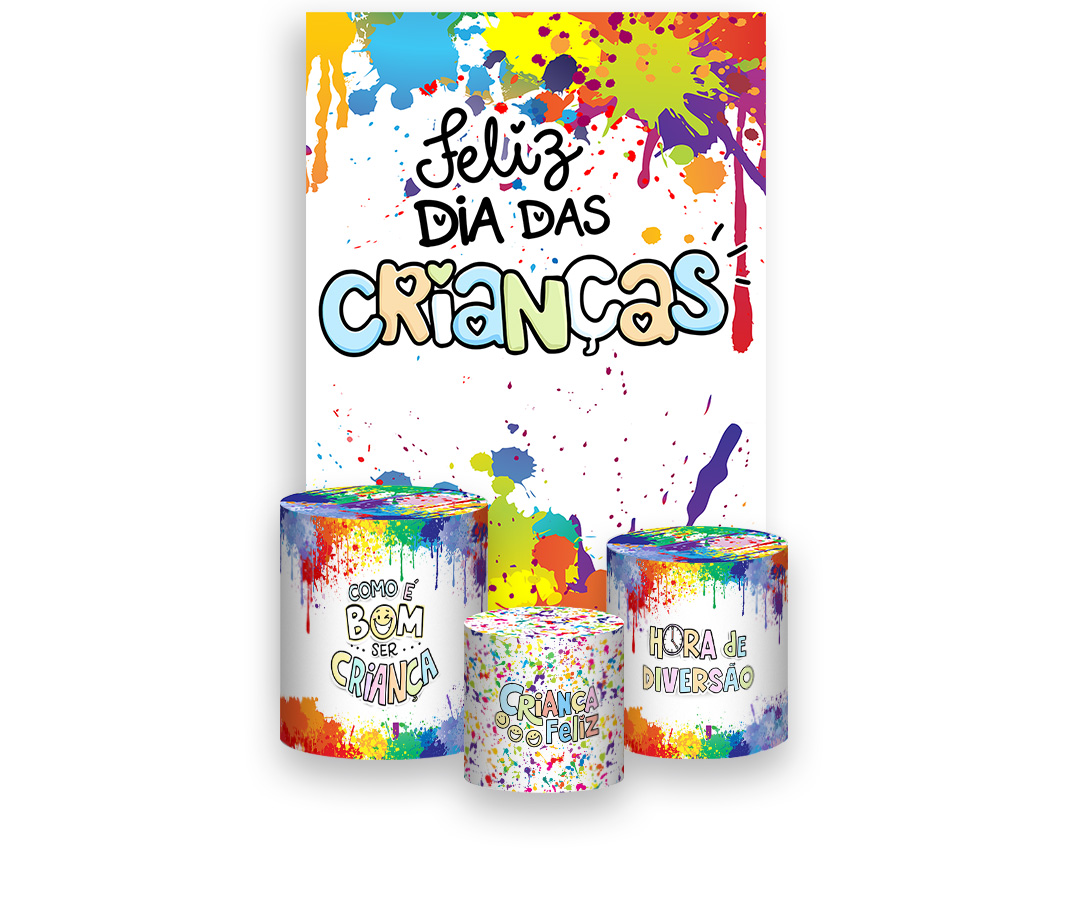 Painel De Festa Vertical 1,50 x 2,20 + Trio De Capas Cilindro - Feliz Dia das Crianças Tintas 041