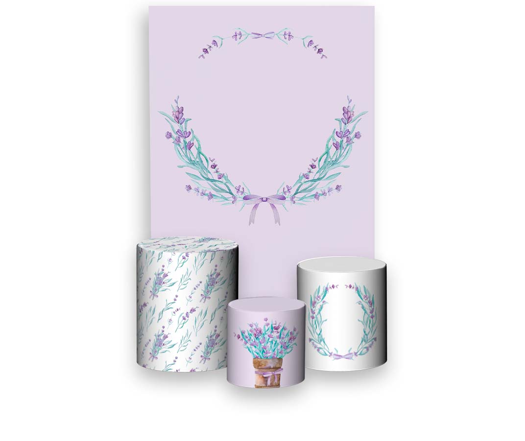 Painel De Festa Vertical 1,50 x 2,20 + Trio De Capas Cilindro - Flor de Lavanda 021