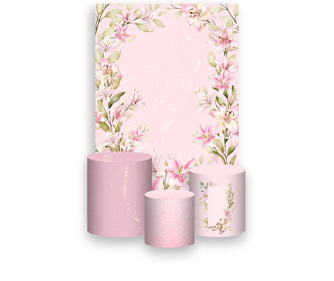 Painel De Festa Vertical 1,50 x 2,20 + Trio De Capas Cilindro - Flor Lírios Rosas 104