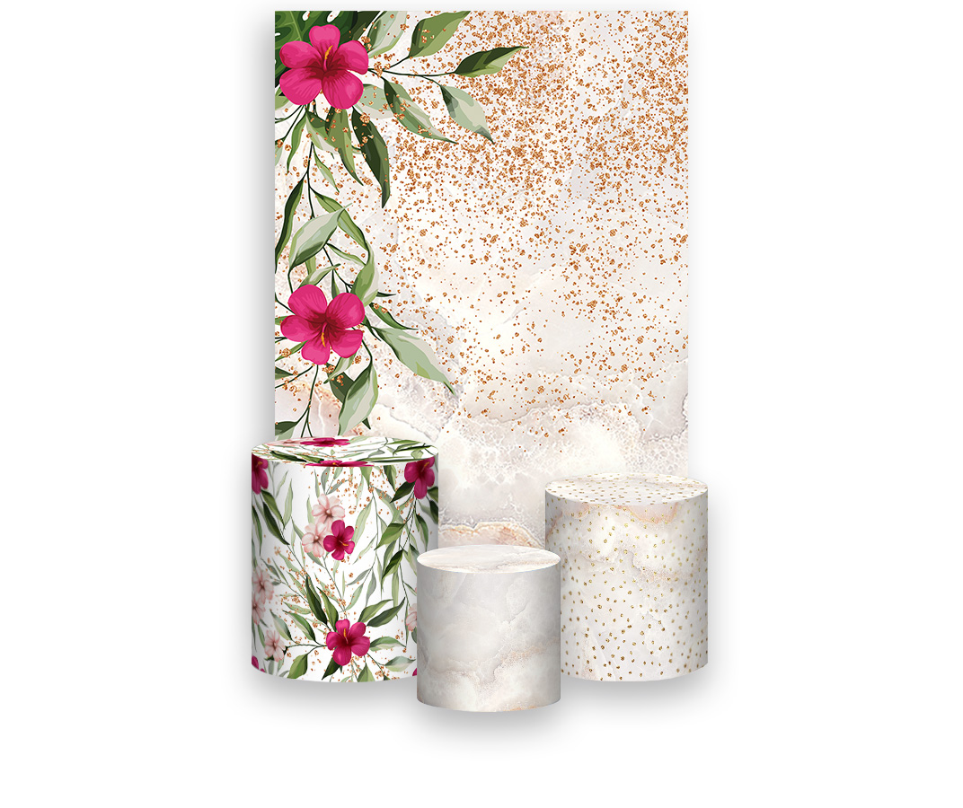Painel De Festa Vertical 1,50 x 2,20 + Trio De Capas Cilindro - Flor Pink Efeito Glitter 122