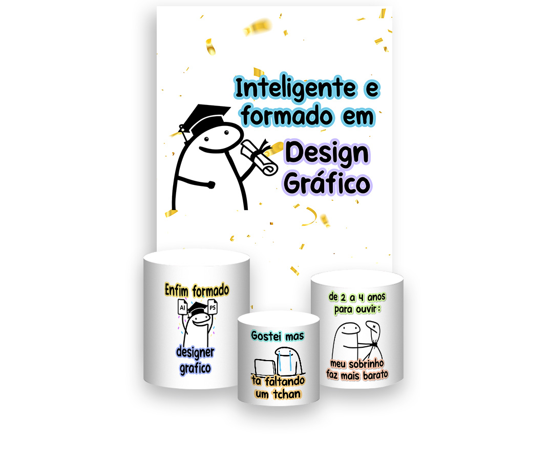 Painel De Festa Vertical 1,50 x 2,20 + Trio De Capas Cilindro - Flork Formatura Design Gráfico 020