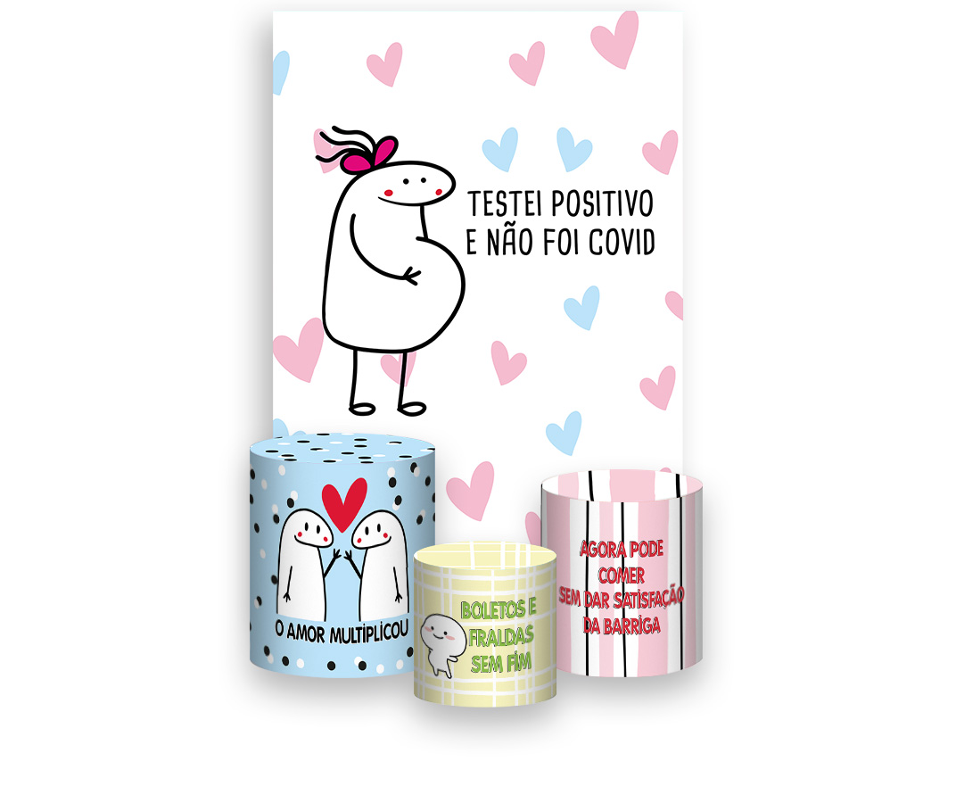 Painel De Festa Vertical 1,50 x 2,20 + Trio De Capas Cilindro - Flork Revelação Testei Positivo 006
