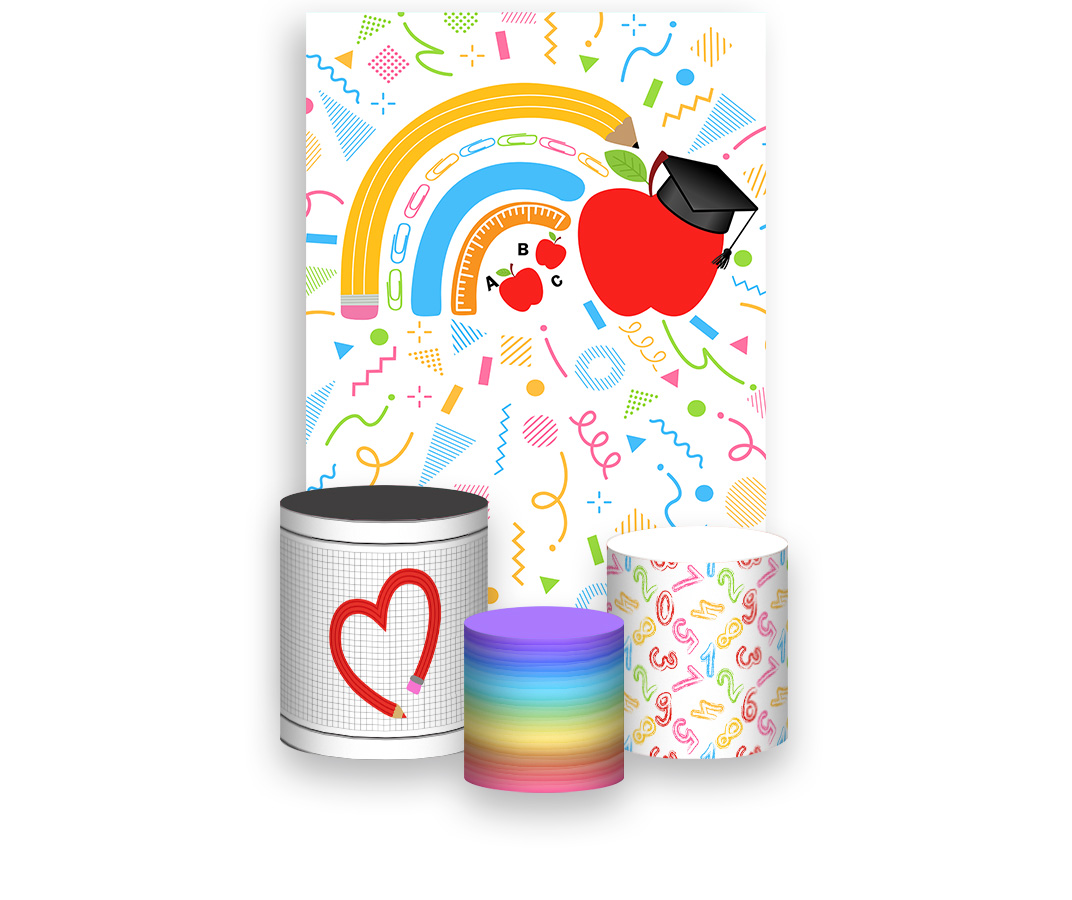 Painel De Festa Vertical 1,50 x 2,20 + Trio De Capas Cilindro - Formatura Colorida Infantil 020
