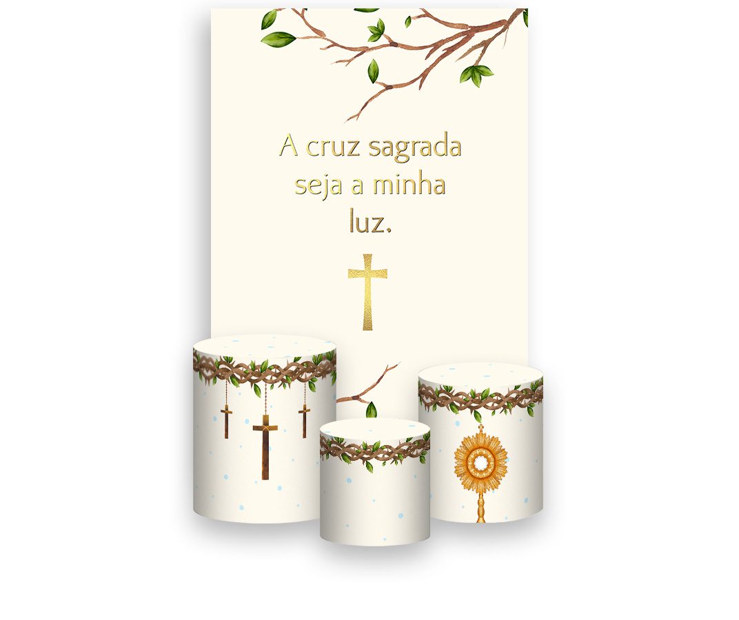 Painel De Festa Vertical 1,50 x 2,20 + Trio De Capas Cilindro - Galhos e Folhagens Santo São Bento 011