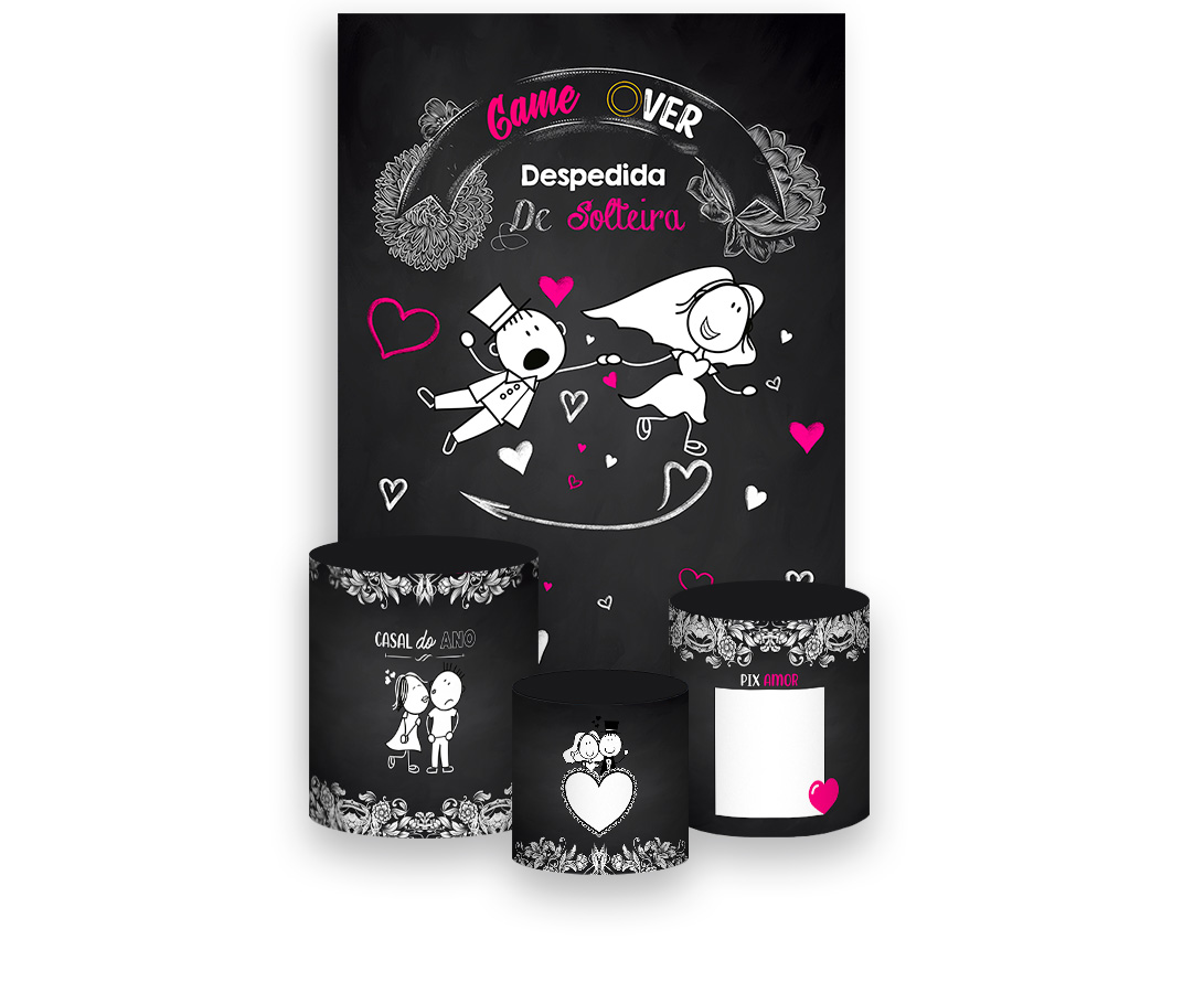 Painel De Festa Vertical 1,50 x 2,20 + Trio De Capas Cilindro - Game Over Despedida de Solteiro 009