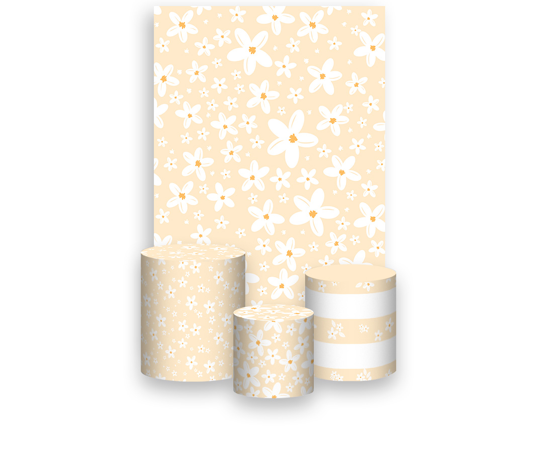 Painel De Festa Vertical 1,50 x 2,20 + Trio De Capas Cilindro - Margaridas Fundo Bege 117