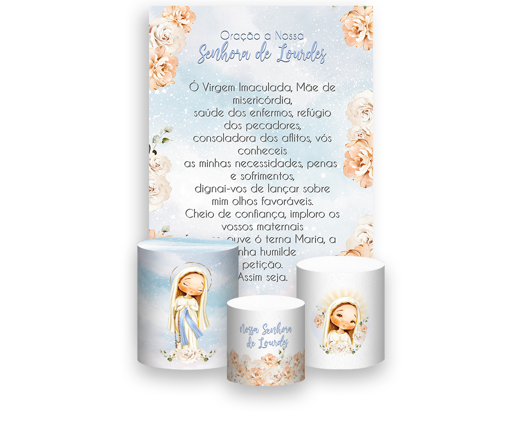 Painel De Festa Vertical 1,50 x 2,20 + Trio De Capas Cilindro - Nossa Senhora de Lourdes 028