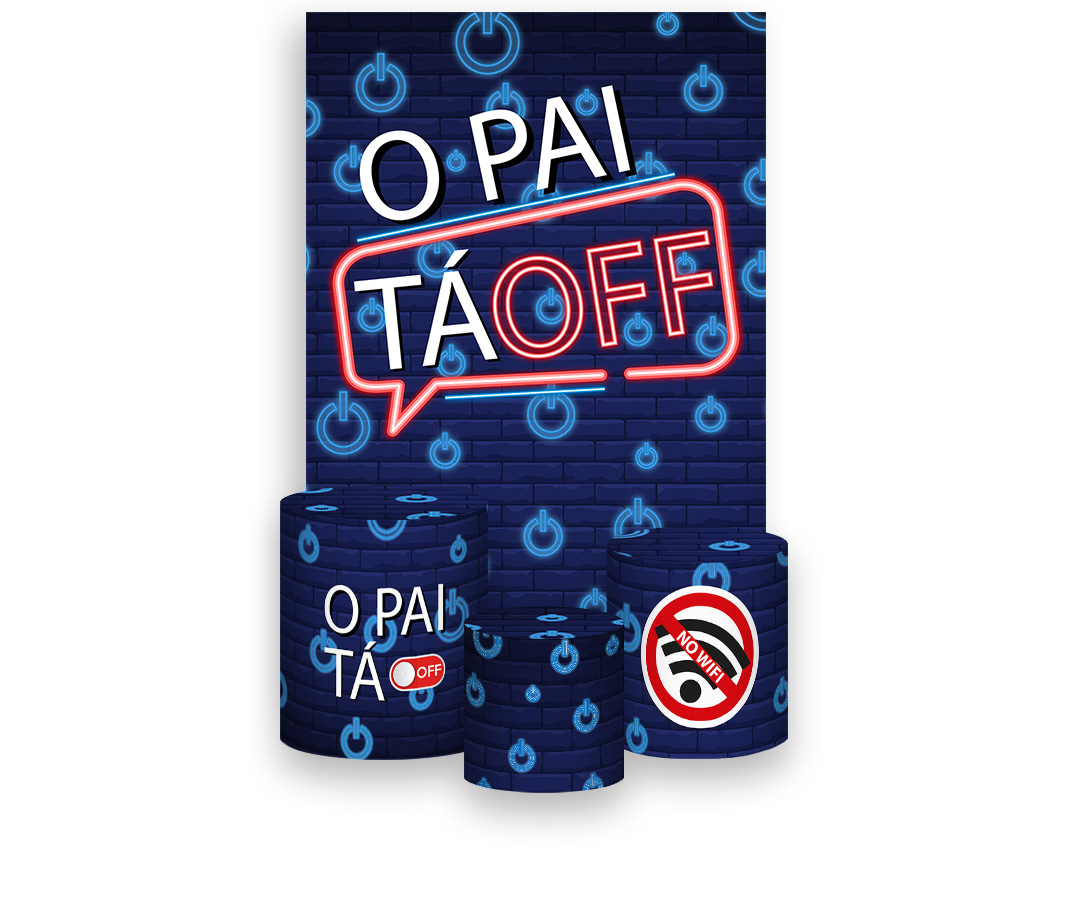 Painel De Festa Vertical 1,50 x 2,20 + Trio De Capas Cilindro - O Pai Tá Off 009