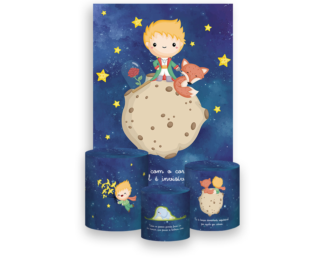 Painel De Festa Vertical 1,50 x 2,20 + Trio De Capas Cilindro - Pequeno Príncipe no Pequeno Planeta 016