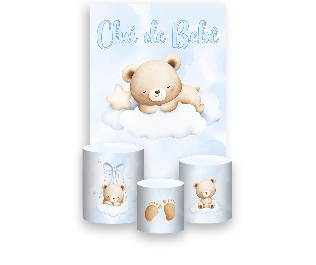 Painel De Festa Vertical 1,50 x 2,20 + Trio De Capas Cilindro - Ursinho Cute Azul 086