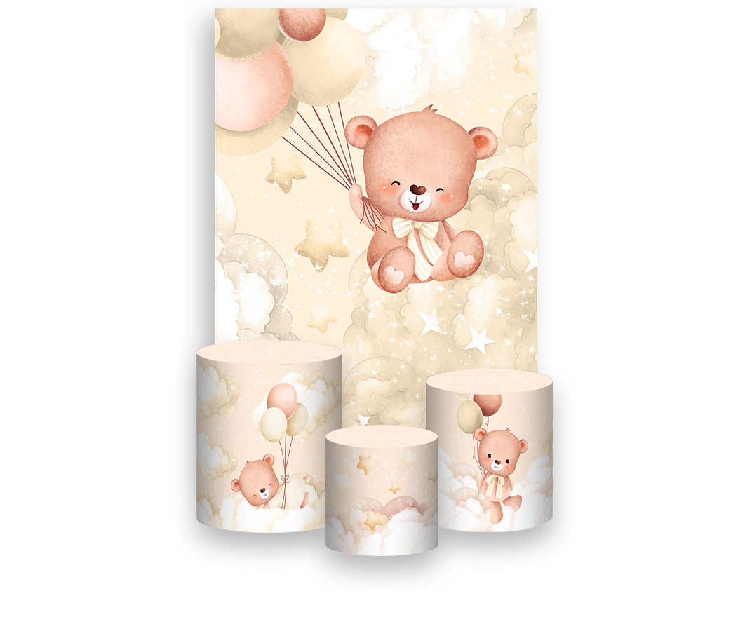 Painel De Festa Vertical 1,50 x 2,20 + Trio De Capas Cilindro - Ursinho de Pelúcia Bege 109