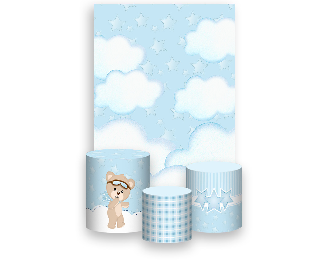 Painel De Festa Vertical 1,50 x 2,20 + Trio De Capas Cilindro - Urso Aviador Aquarela 057