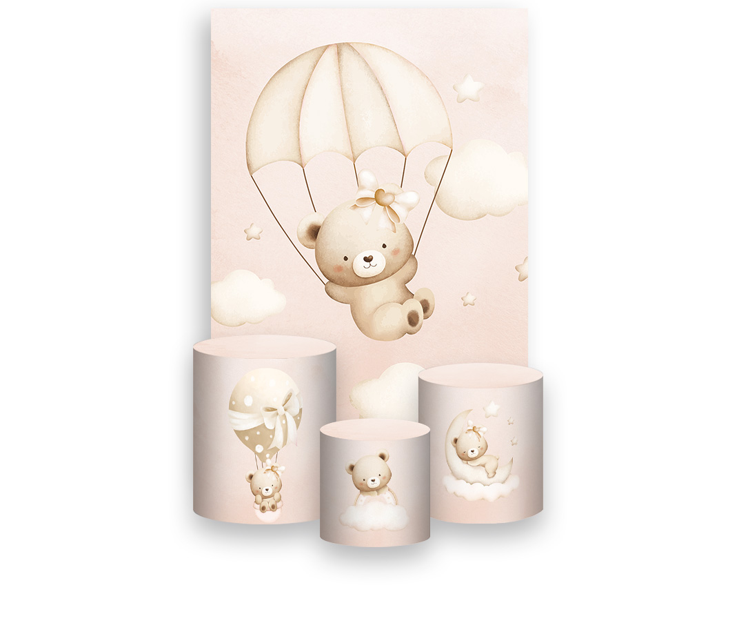 Painel De Festa Vertical 1,50 x 2,20 + Trio De Capas Cilindro - Urso Baloeiro Bege 093