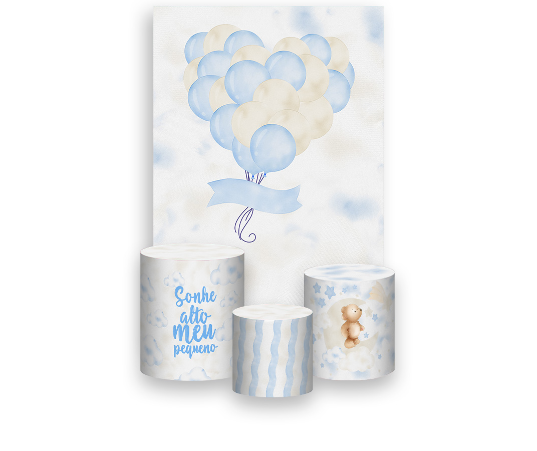 Painel De Festa Vertical 1,50 x 2,20 + Trio De Capas Cilindro - Urso Sonho nas Nuvens Aquarela 060