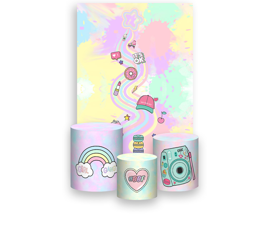 Painel De Festa Vertical 1,50 x 2,20 + Trio De Capas Cilindro - VSCO Girl Colorido 009