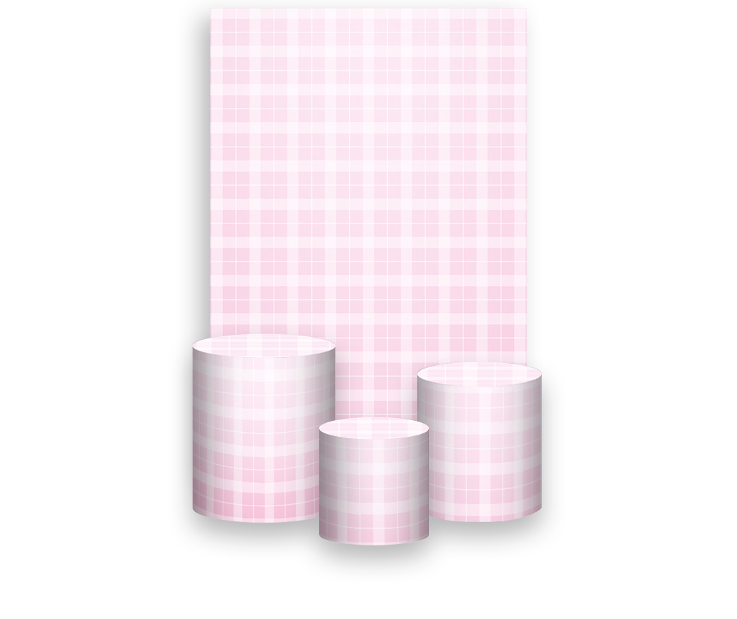 Painel De Festa Vertical 1,50 x 2,20 + Trio De Capas Cilindro - Xadrez Degradê Rosa Suave 021